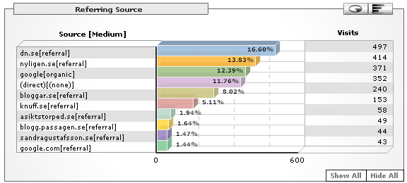Visits v 7: Totals: 1,724 Average: 246.29. Absolut unique visitors: 1,522
