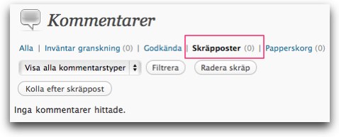 Så – ta en runda förbi Skräpkorgen i din blogg och kolla genom vad som finns där. Det enda sättet att komma från det här är att många klickar på ”Inte spam” på de pingar som faktiskt är riktiga pingar och kommentarer.