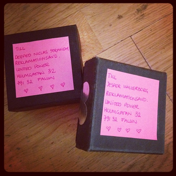Det ringde på dörren på United Power på onsdagsmorgonen… ”Niclas och Jesper har paket utanför dörren.” sa en kvinnoröst i porttelefonen. De hade tagit sig in i den låsta dörren och åkt upp och lämnat två paket och sedan ringt upp.