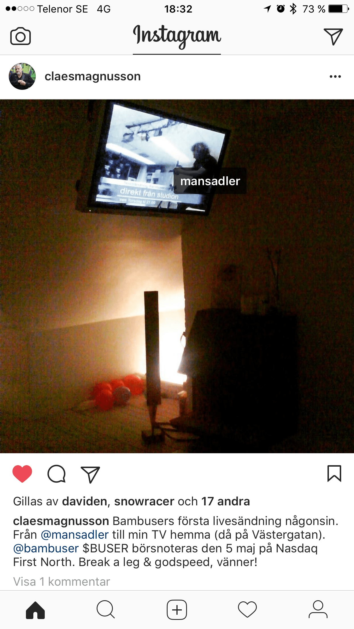 Idag höll jag och Sarah en kurs i disposable media och live. Idag är livesändningar något som många börjar titta på – hur kan man göra, vad kan man göra osv. Och nyheten att Bambuser ska komma till First North är speciell för oss som var med från början. Bambuser var extremt tidiga på att använda sig av livesändningar: det många fascinerades över 2015 när Meerkat och Periscope lanserades hade flera av oss redan gjort under många år.